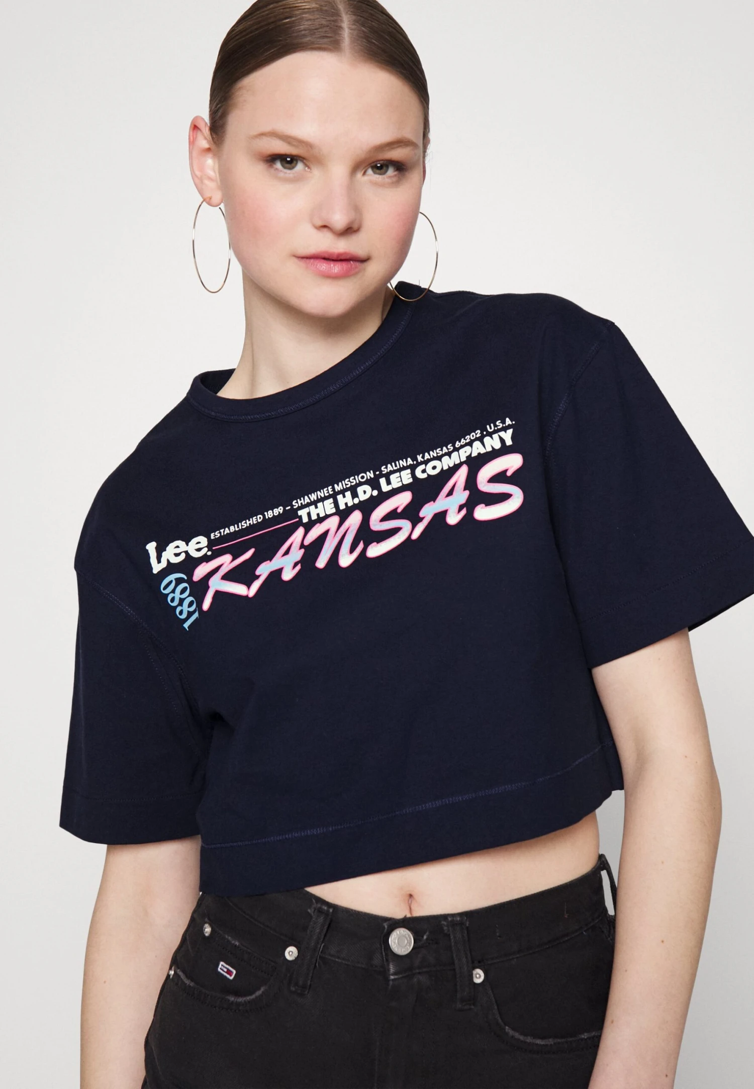 Lee Loose Cropped Tee – T-Shirt Imprimé – Rivet Navy